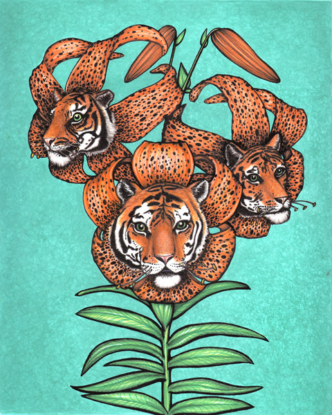 Tiger Lilies es una reproducción giclée de archivo firmada de mi dibujo original en tinta y marcador.