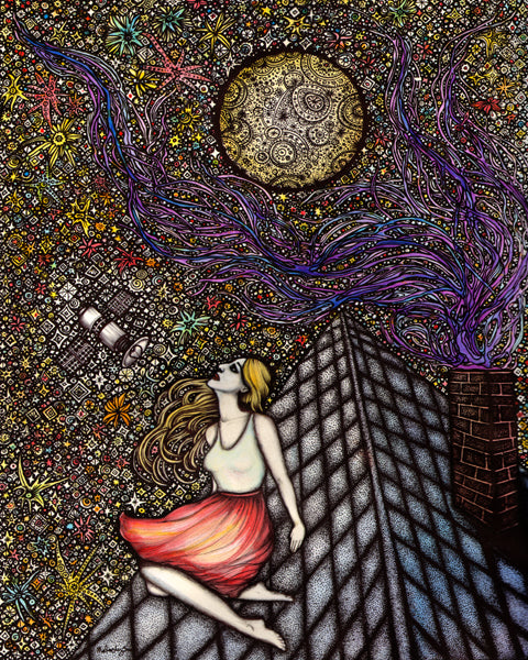 Wish Upon a Satellite es una reproducción giclée de archivo firmada de mi pintura original en tinta y acuarela.